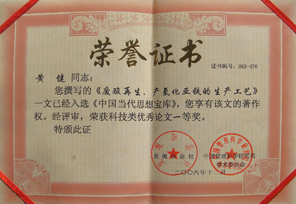 《廢酸再生、產(chǎn)氯化亞鐵的生產(chǎn)工藝》入選《中國當代思想寶庫》