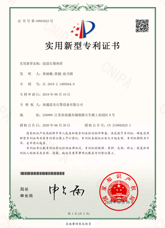 實(shí)用新型專利 :浸漬石墨熱管 專利號(hào):ZL 2019 2 1495044.0