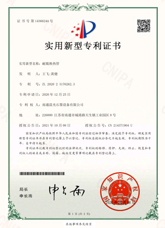 上一條:實(shí)用新型專利 :石墨換熱器 專利號(hào):ZL 2019 2 1407837.2
