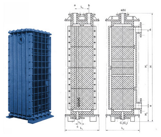 矩形塊孔式石墨熱交換器由截面為矩形的單元換熱塊疊裝而成,整體強度高,耐熱沖擊性能好,傳熱效率高使用壽命長。本公司常規(guī)生產(chǎn)均為內(nèi)聯(lián)式單向耐腐蝕3JK型與KS型兩系列。